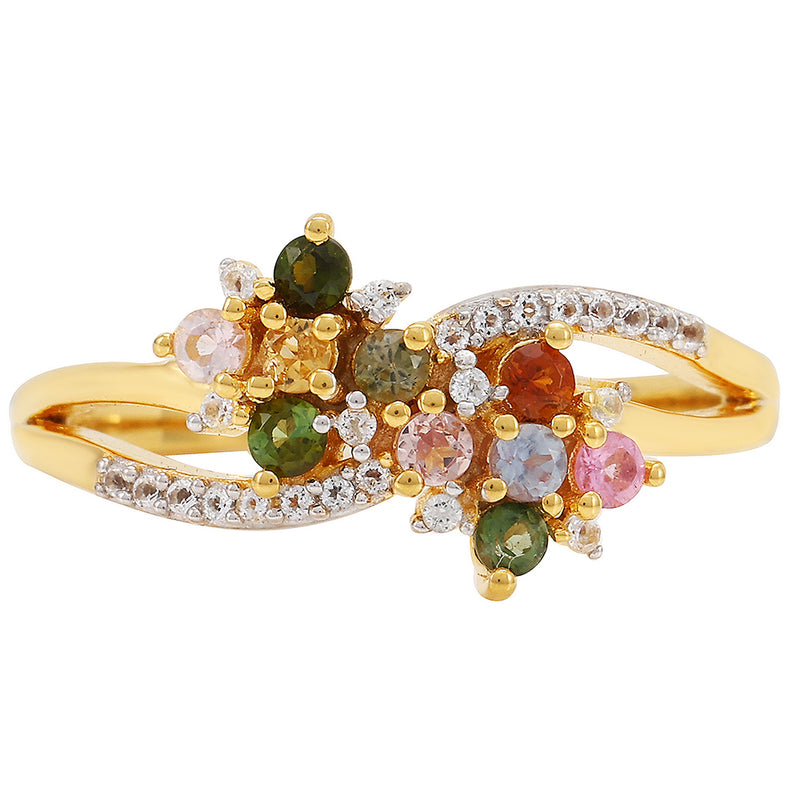 Pozlacený Stříbrný Prsten s Duhovým Turmalínem z Pelmadulla a Bílým Topazem