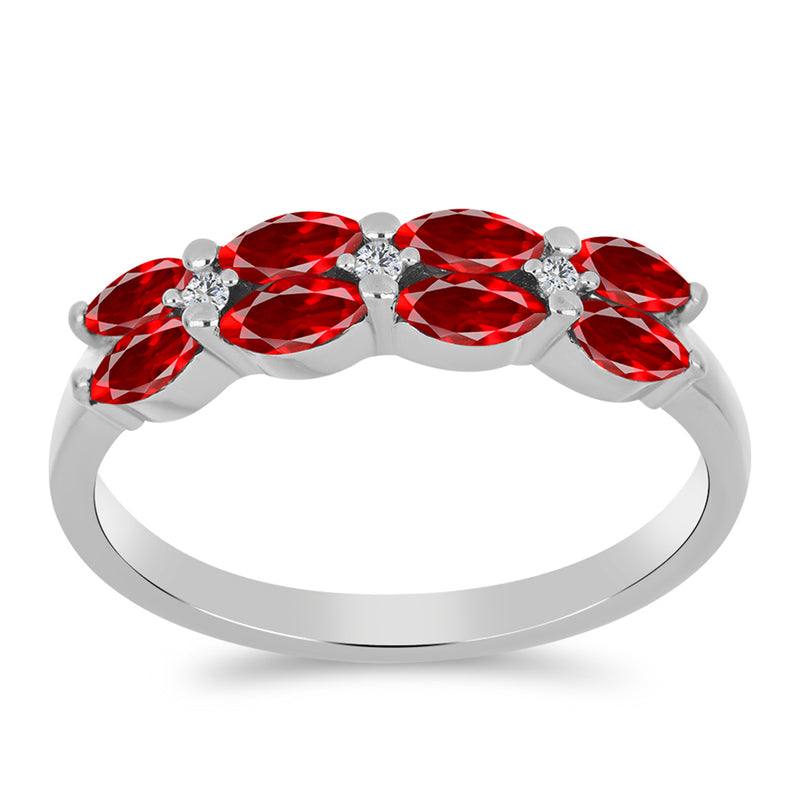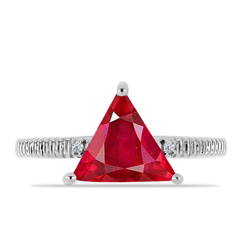 Stříbrný Prsten s Madagaskarským Rubínem a Bílým Diamantem