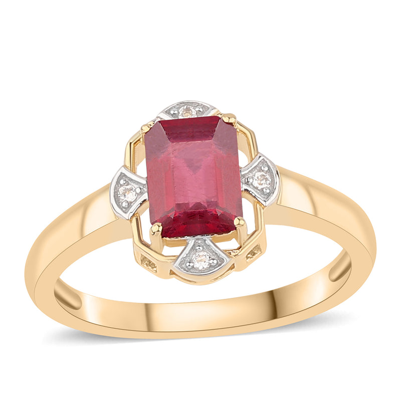 Pozlacený Stříbrný Prsten s Thajským Rubínem a Bílým Topazem