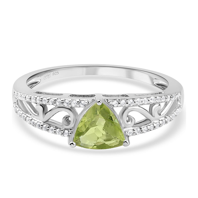 Stříbrný Prsten s Peridotem a Bílým Topazem