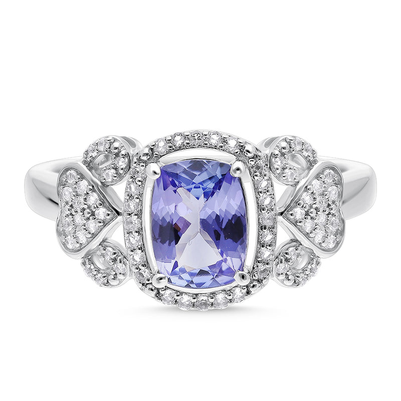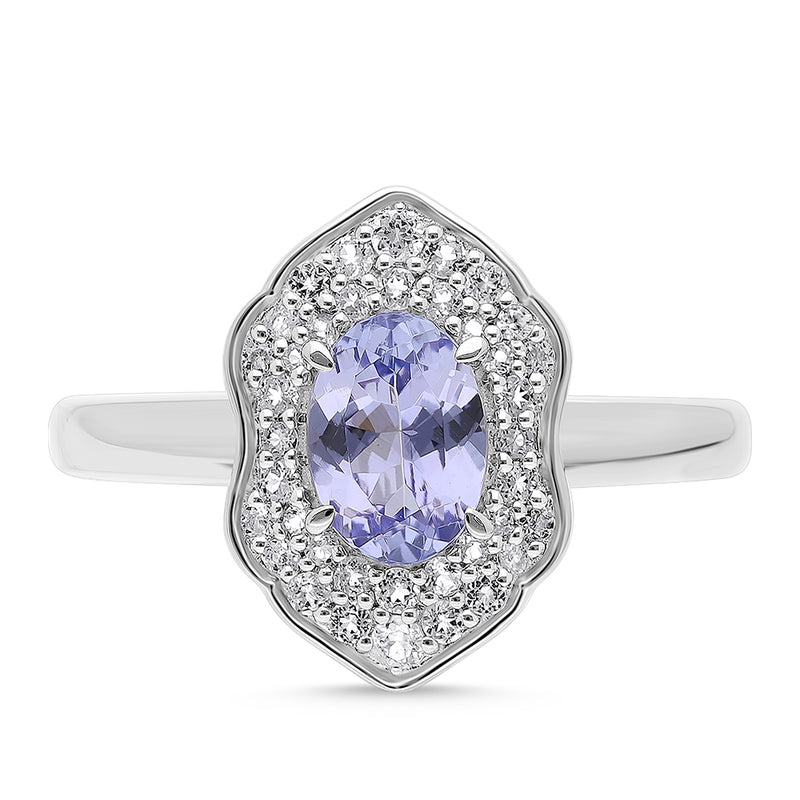 Stříbrný Prsten s Tanzanitem a Bílým Topazem