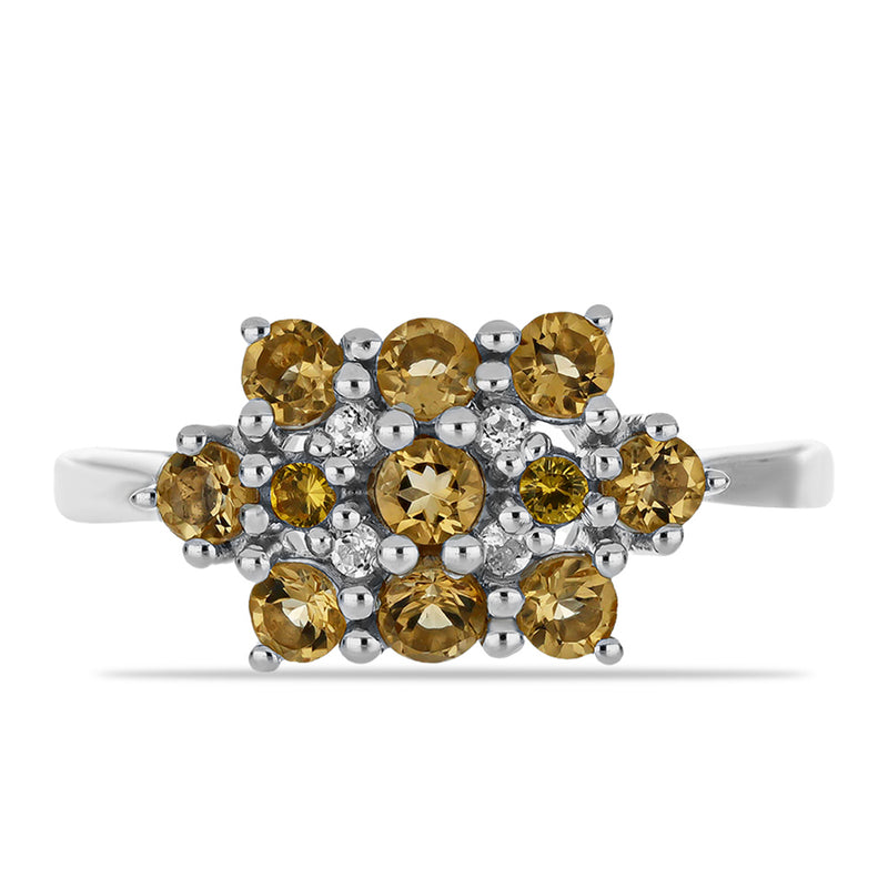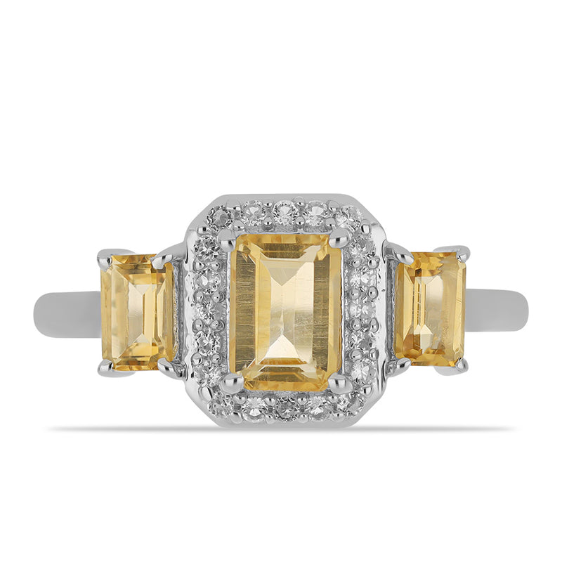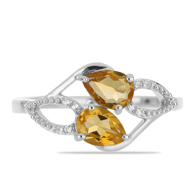 Stříbrný Prsten s Uralským Citrínem a Bílým Topazem
