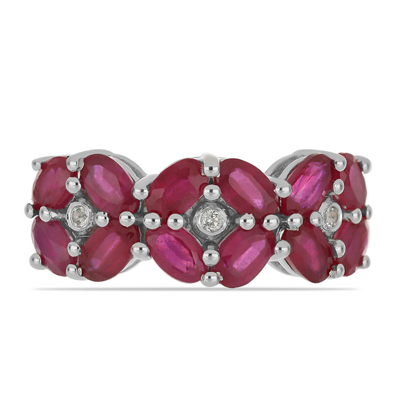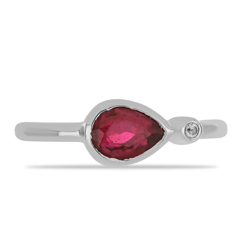 Stříbrný Prsten s Madagaskarským Rubínem a Bílým Topazem