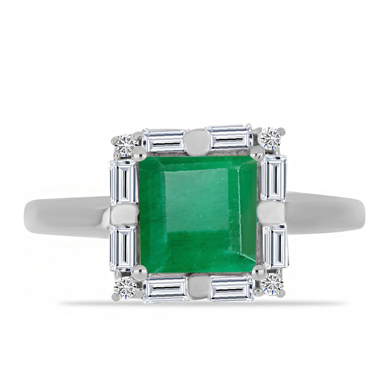 Stříbrný Prsten s Brazilským Smaragdem a Bílým Diamantem
