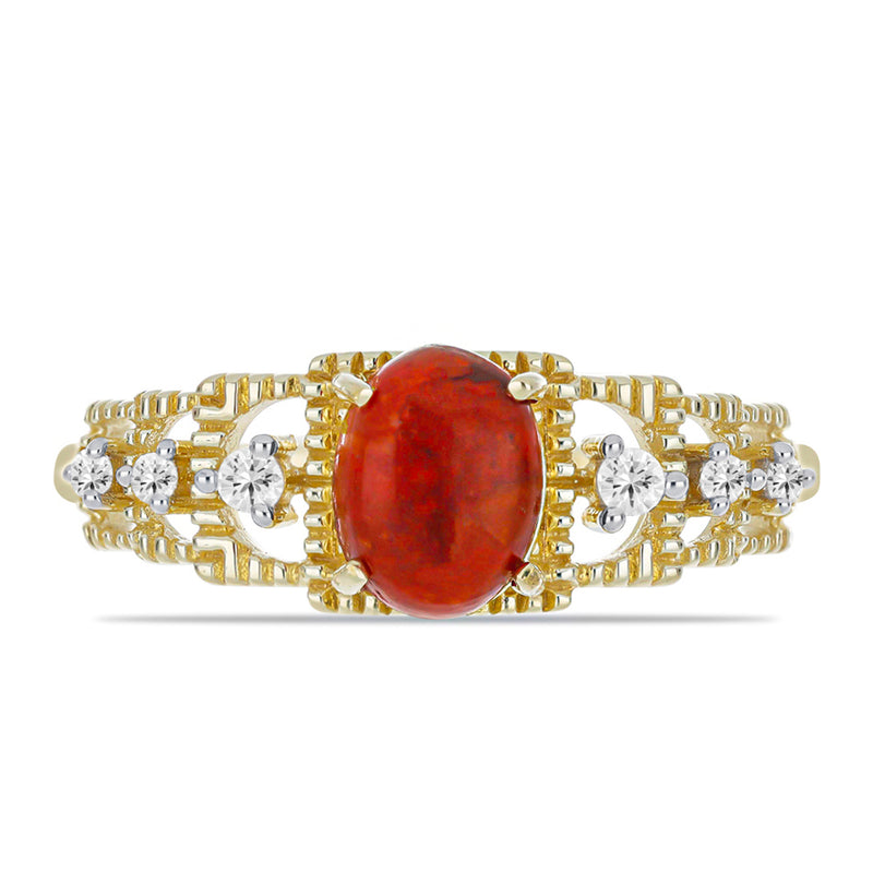 Pozlacený Stříbrný Prsten s Červeným Korálem a Bílým Topazem