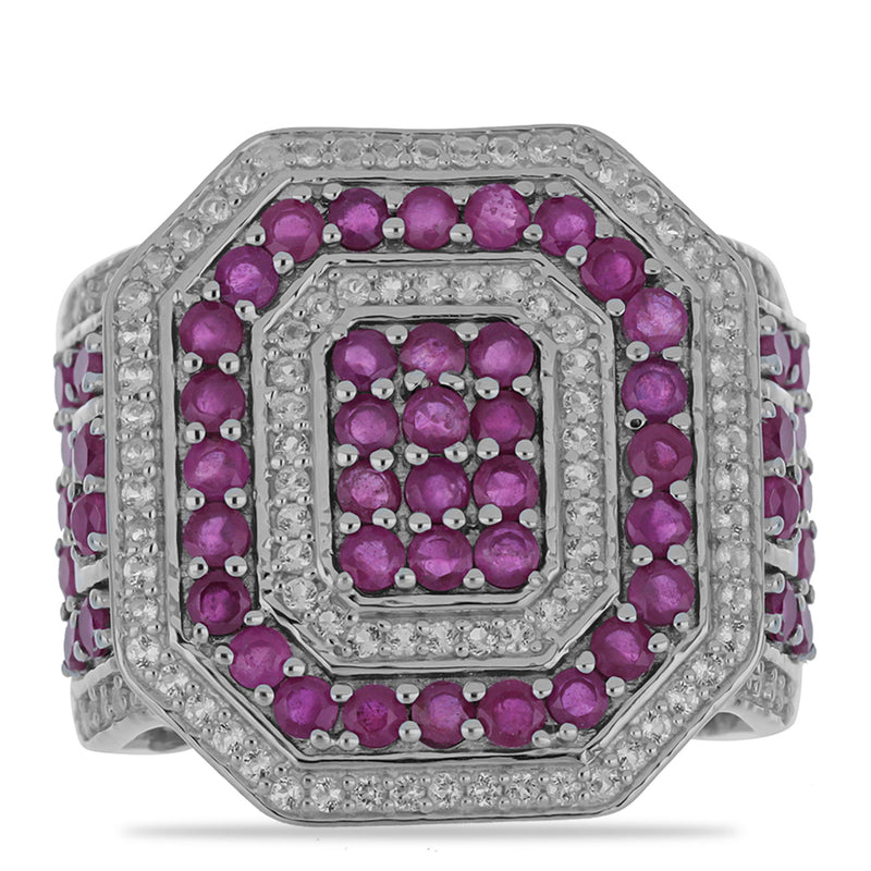 Stříbrný Prsten s Madagaskarským Rubínem a Bílým Topazem