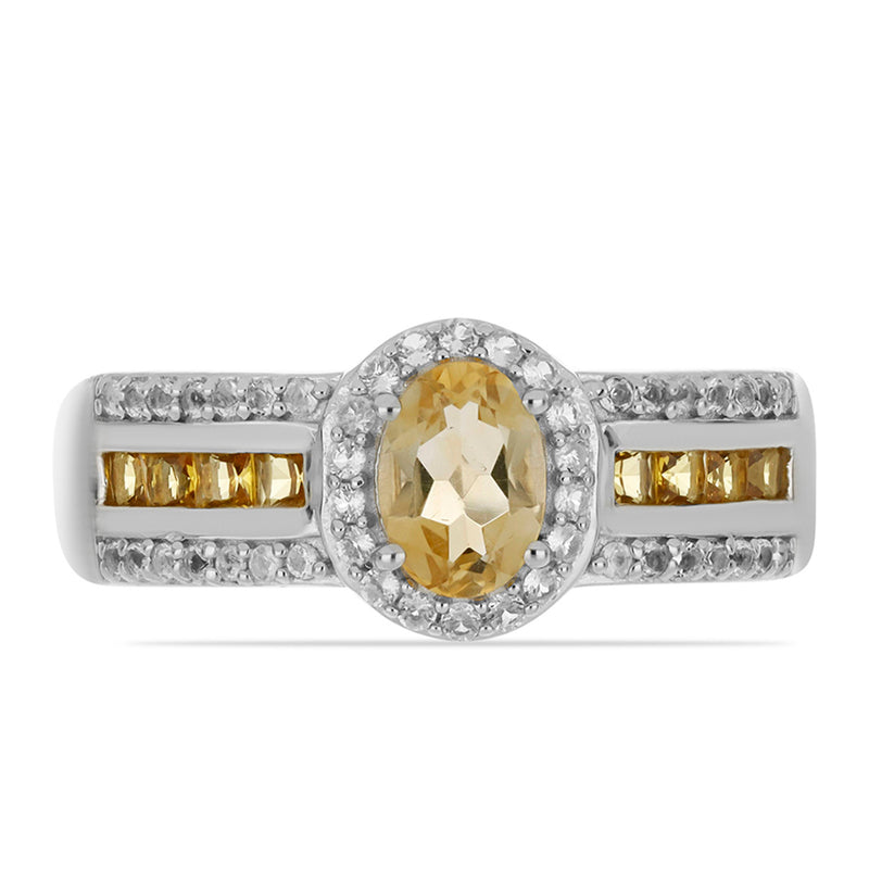 Stříbrný Prsten s Uralským Citrínem a Bílým Topazem