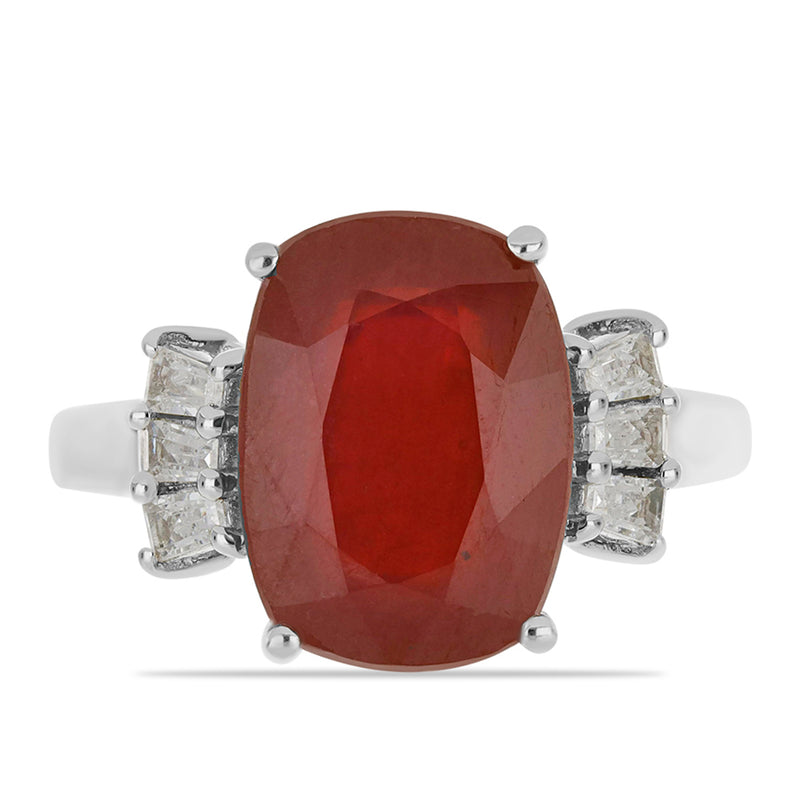 Stříbrný Prsten s Madagaskarským Rubínem a Bílým Zirkonem