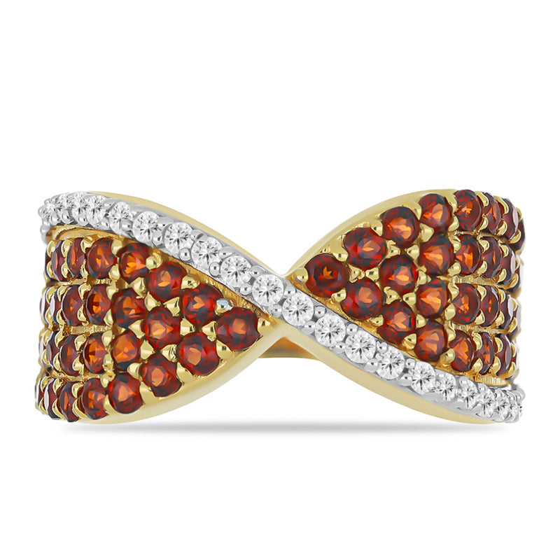 Pozlacený Stříbrný Prsten s Bartonským Granátem a Bílým Topazem