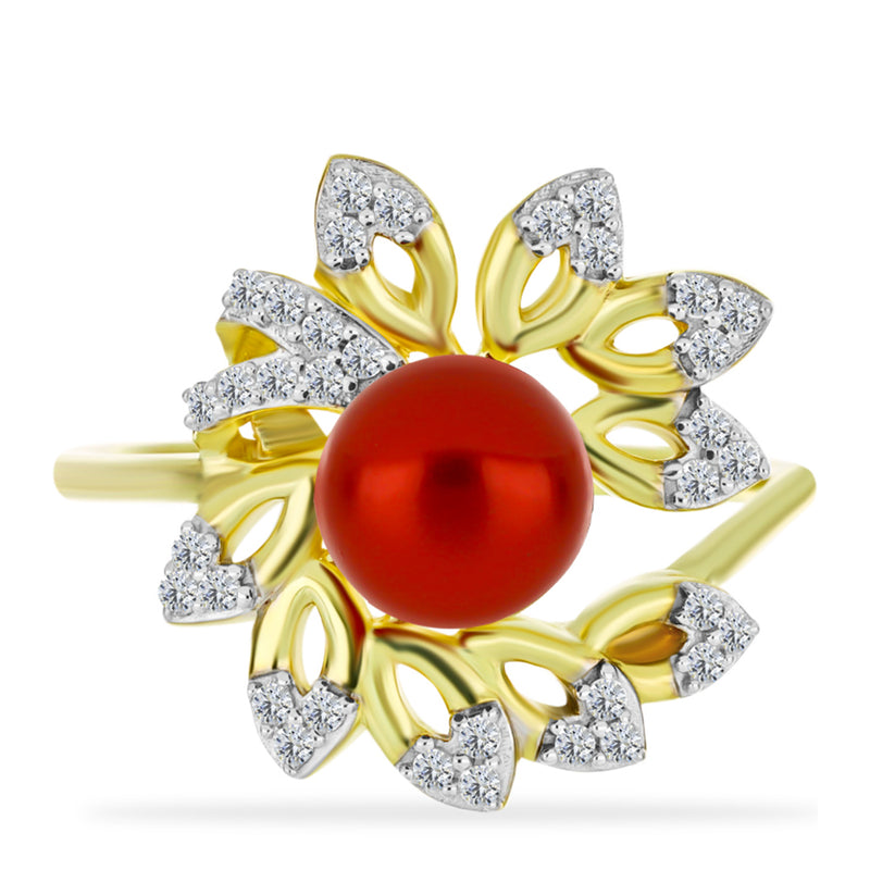 Pozlacený Stříbrný Prsten s Červená sladkovodní Perlou a Bílým Topazem