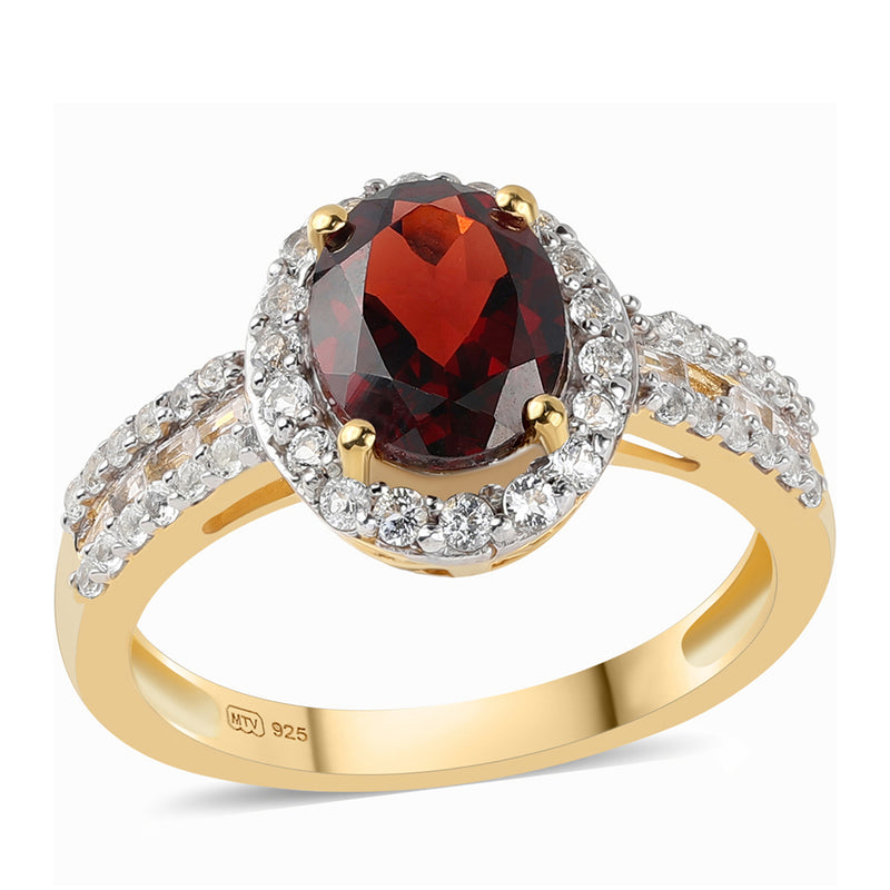 Pozlacený Stříbrný Prsten s Bartonským Granátem a Bílým Topazem