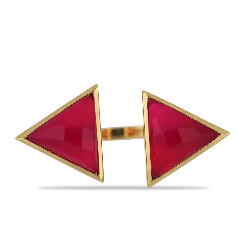 Pozlacený Stříbrný Prsten s Růžovým Onyxem