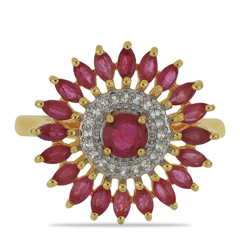 Pozlacený Stříbrný Prsten s Madagaskarským Rubínem a Bílým Topazem