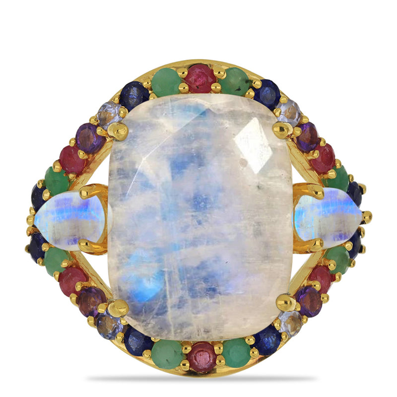Pozlacený Stříbrný Prsten s Duhovým Měsíčním Kamenem a Tanzanitem