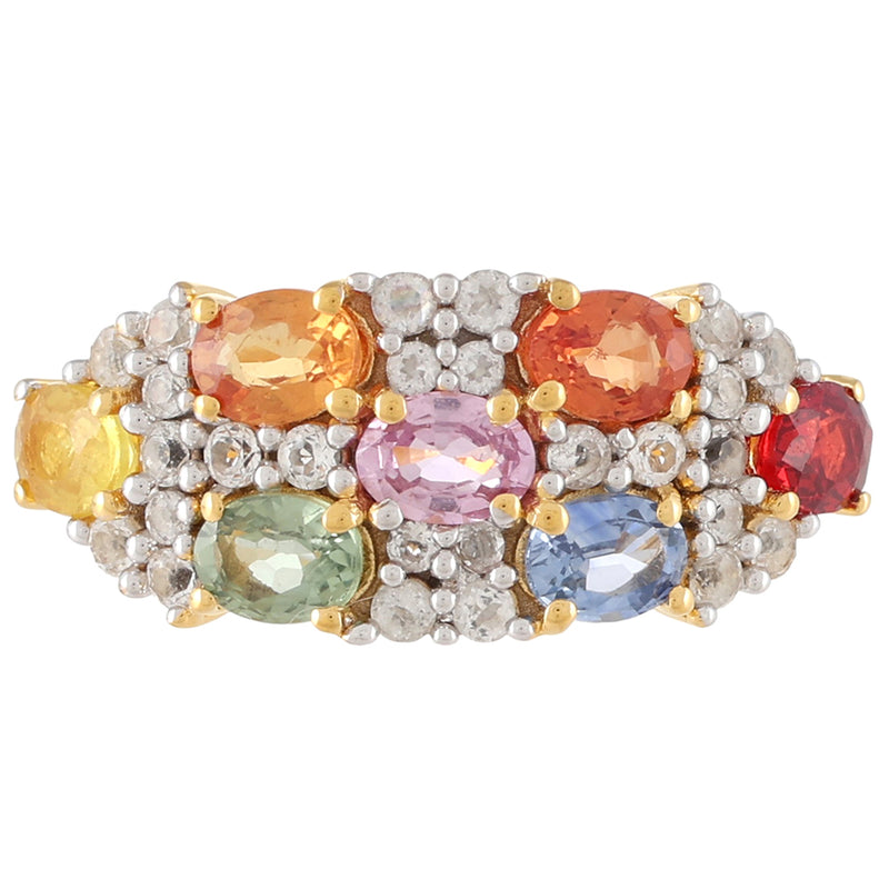 Pozlacený Stříbrný Prsten s Duhovým Safírem a Bílým Topazem