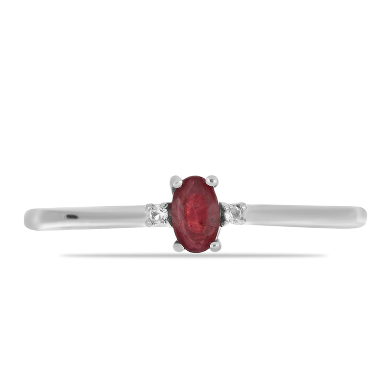 Stříbrný Prsten s Madagaskarským Rubínem a Bílým Topazem