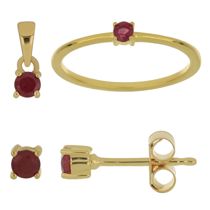 Pozlacená Stříbrná Sada s Madagaskarským Rubínem ( Náušnice+Prsten+Přívěsek )
