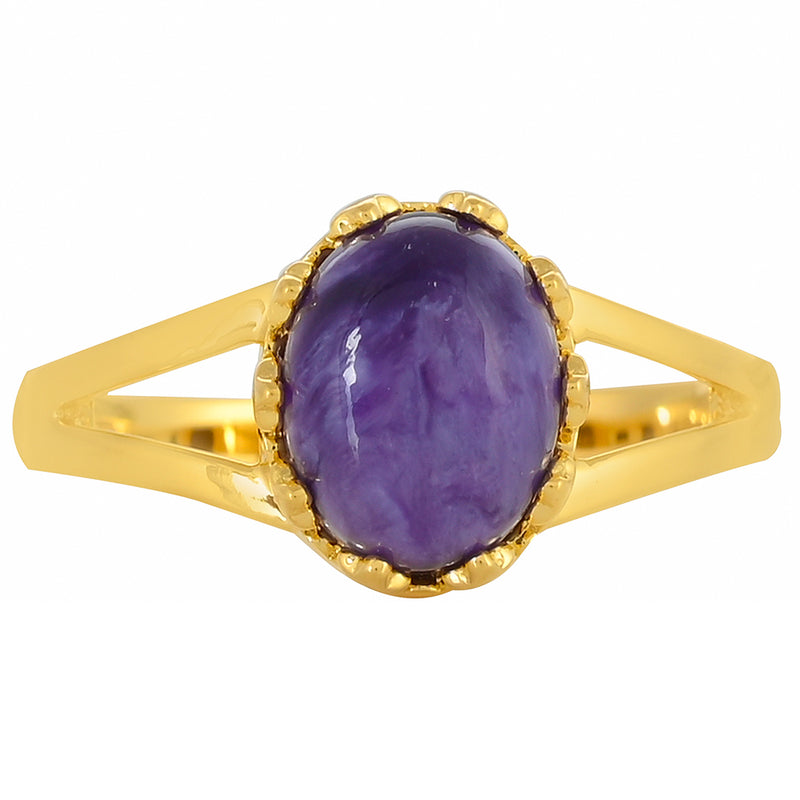 Pozlacený Stříbrný Prsten s Levandulovým Chalcedonem