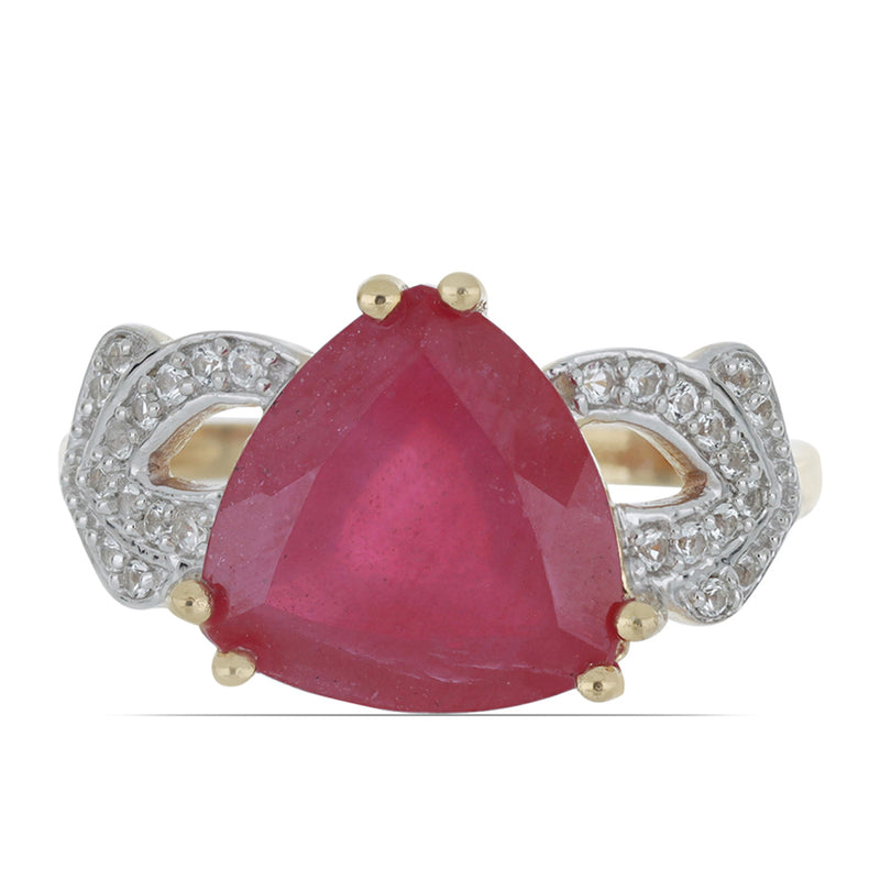 Pozlacený Stříbrný Prsten s Madagaskarským Rubínem a Bílým Topazem