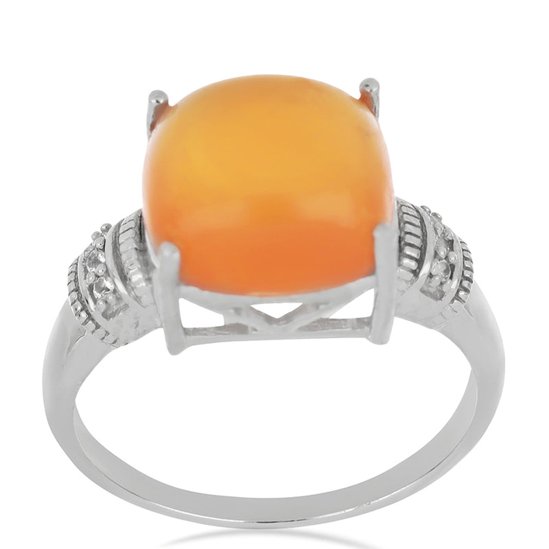 Stříbrný Prsten s Oranžovým Ohnivým Opálem a Bílým Topazem