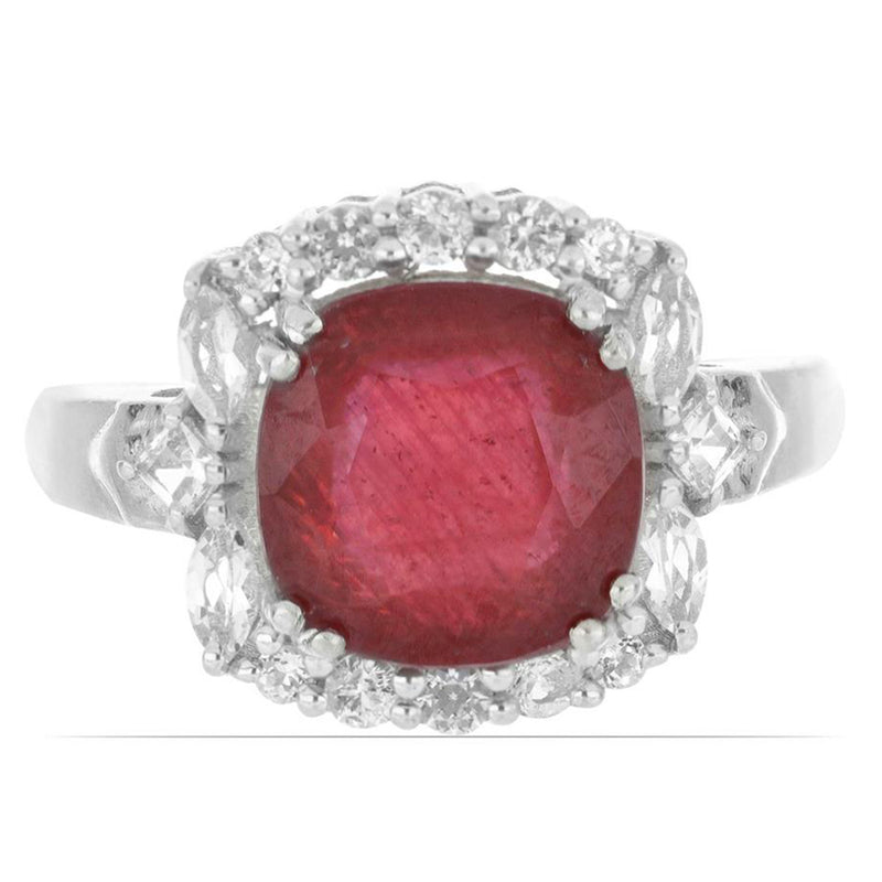 Stříbrný Prsten s Madagaskarským Rubínem a Bílým Topazem