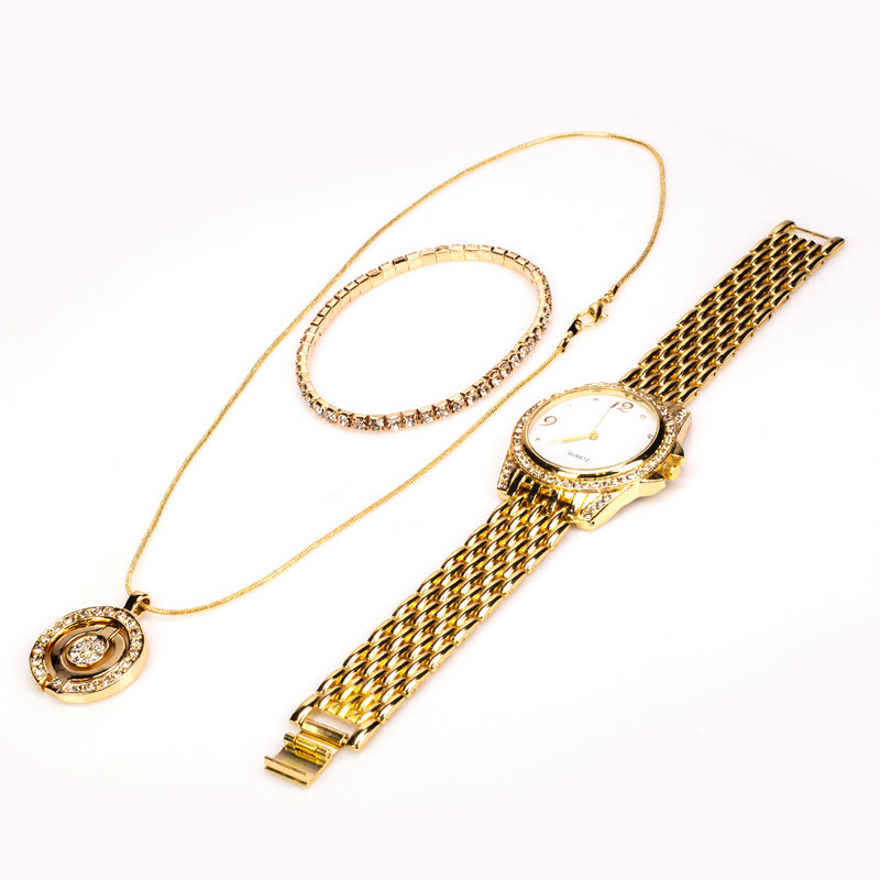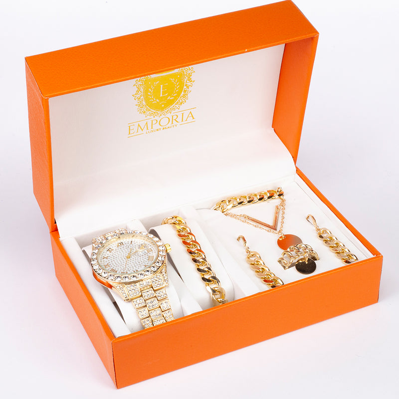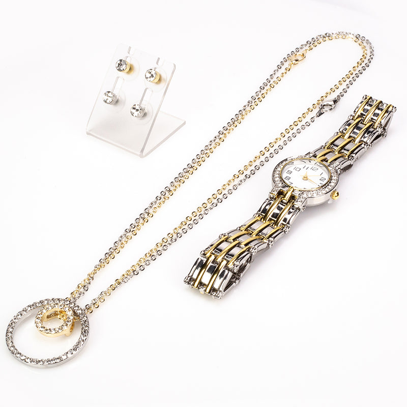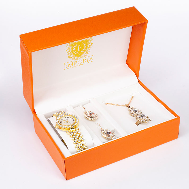 Pozlacený Slitinový Hodinky s Bílým Emporia® Křišťálem (Náhrdelník+Náušnice+Náramek+Přívěsek)