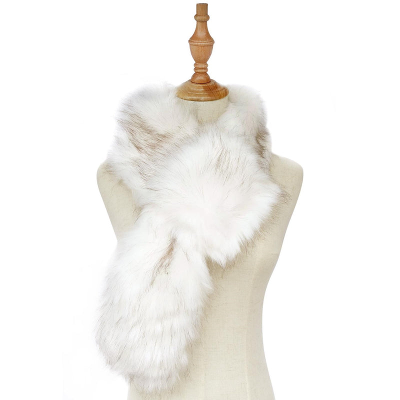 Bílá hladká šála z umělé kožešiny, 13,5 cm x 125 cm