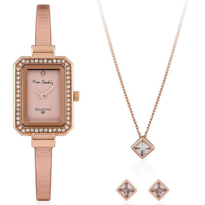 Sada zlatých hodinek a náhrdelníku s bílým křišťálem Emporia®
