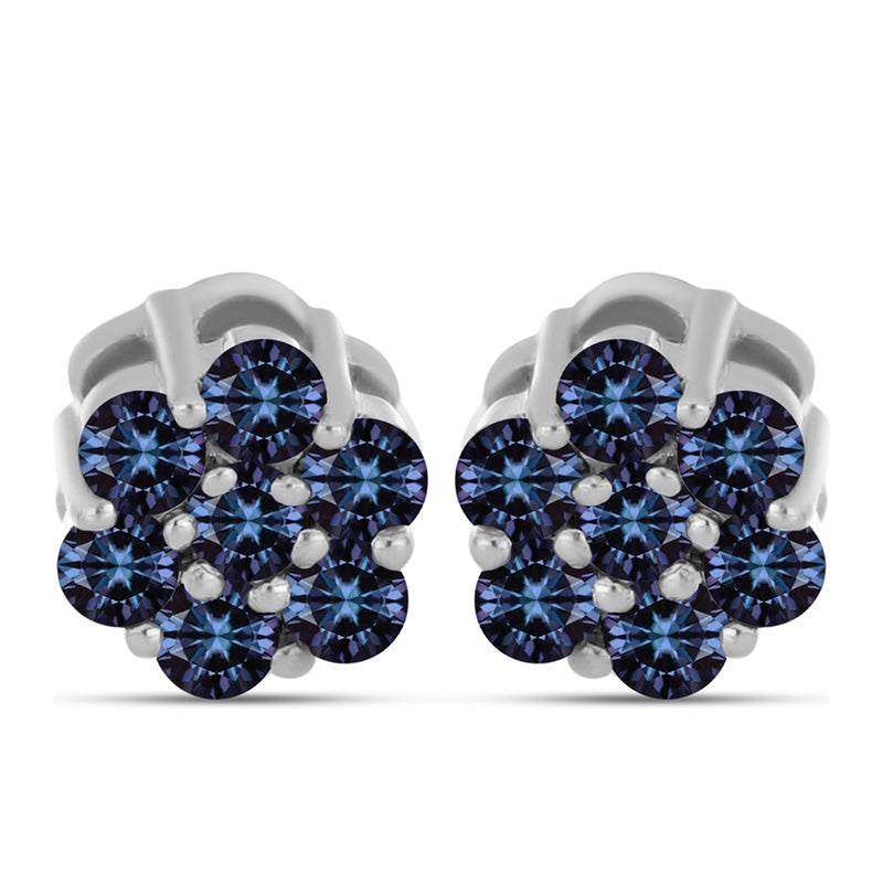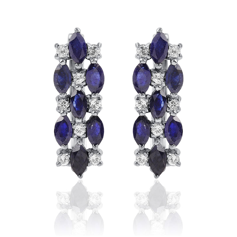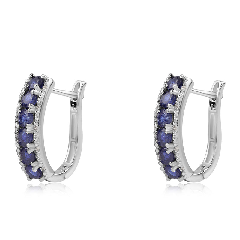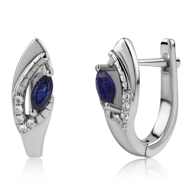 Stříbrné Náušnice s Australským Modrým Safírem a Bílým Topazem