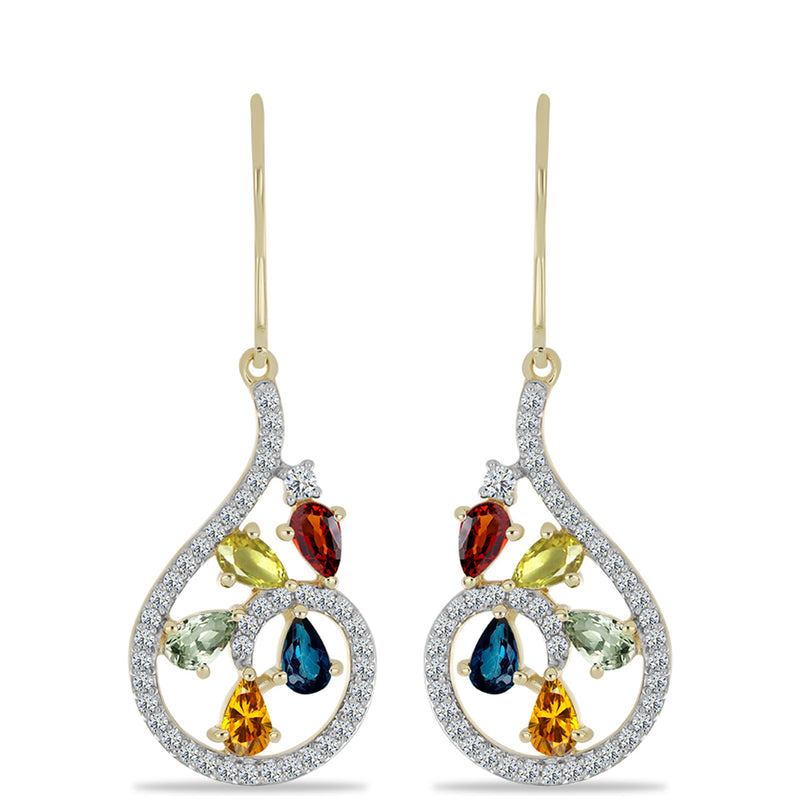 Pozlacené Stříbrné Náušnice s Cognac Diamantem a Bílým Topazem
