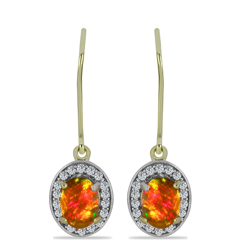 Pozlacené Stříbrné Náušnice s Americkým Ohnivým Opálem a Bílým Topazem