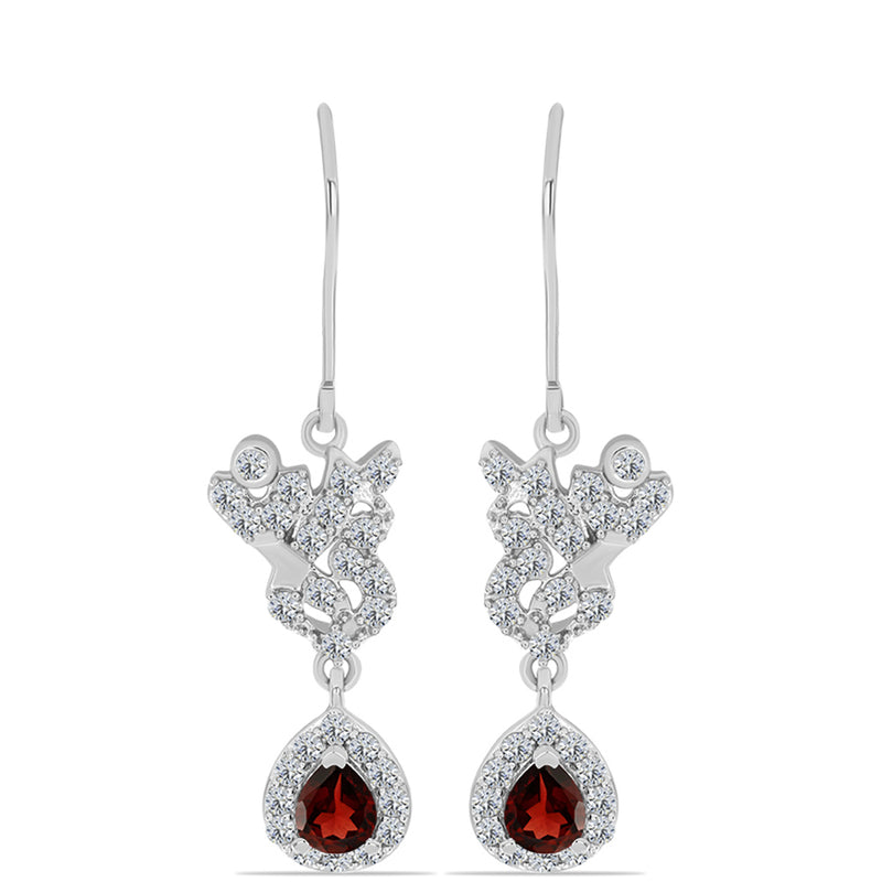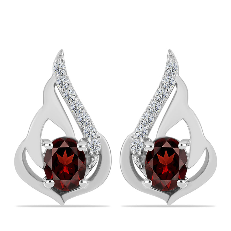Stříbrné Náušnice s Bartonským Granátem a Bílým Topazem