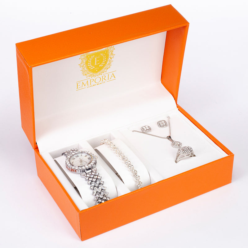 Pozlacený Slitinový Hodinky s Bílým Emporia® Křišťálem (Náhrdelník+Náušnice+Náramek+Přívěsek)