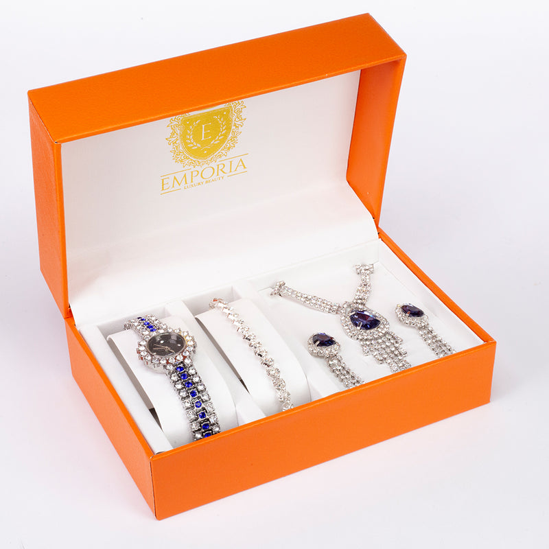 Pozlacený Slitinový Hodinky s Modrým Emporia® Křišťálem (Náhrdelník+Náušnice+Náramek+Přívěsek)