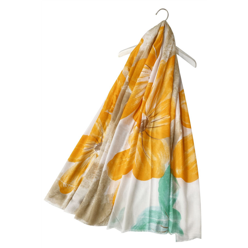 Bavlněná Šála-šátek, 85 cm x 180 cm, Velký květinový vzor, Oranžová