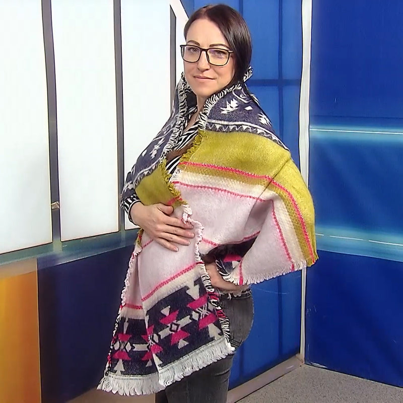 Vlněná šála-šátek, 190 cm x 53 cm, Aztécký vzor, Krémová a námořnická modř