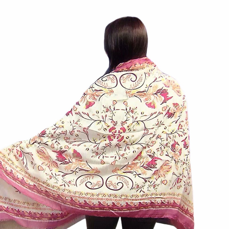Šála-šátek, 90 cm x 180 cm, Světlý lidový květinový vzor, fialová
