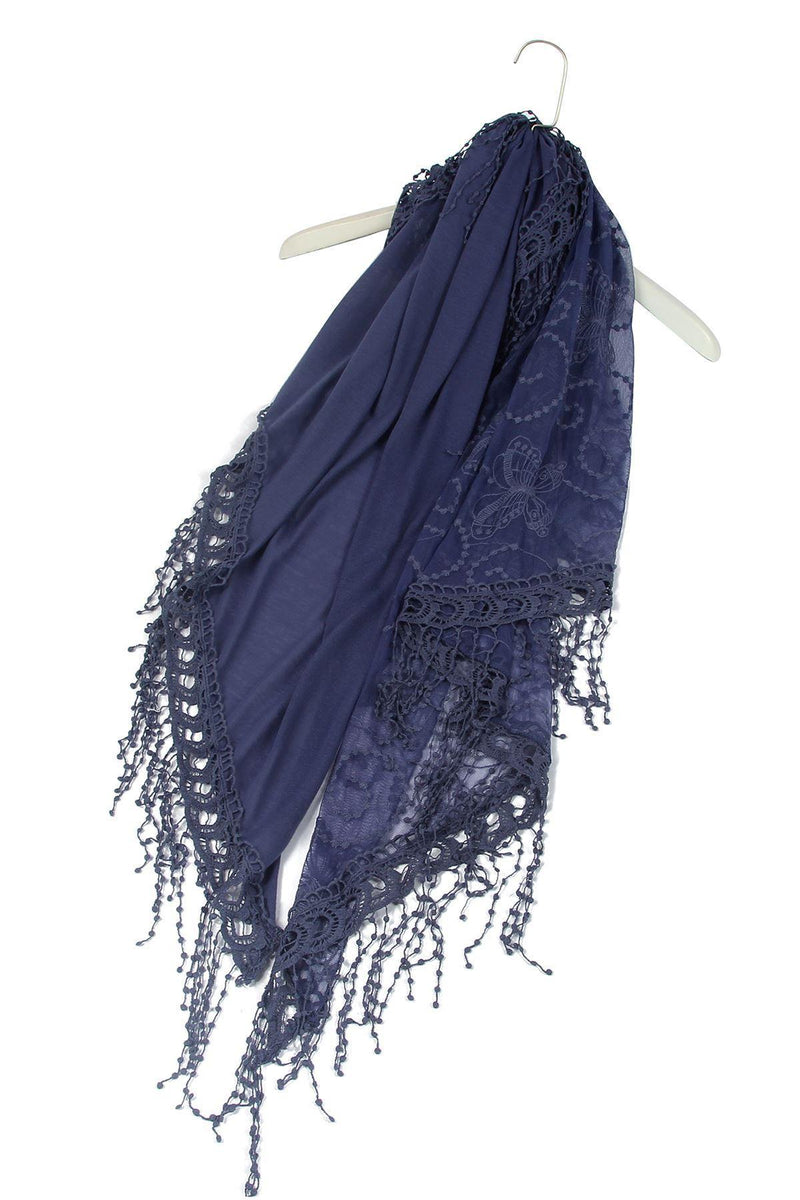 Bavlněná lichoběžníková Šála-šátek, 80 cm x 198 cm x 70 cm, Motýlí a krajkový vzor, Džínová