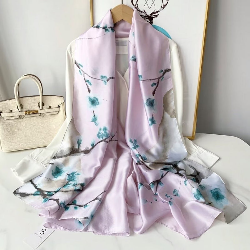 Hedvábný šátek, 90 cm x 180 cm, Vysněná chata, růžový, 100% hedvábí