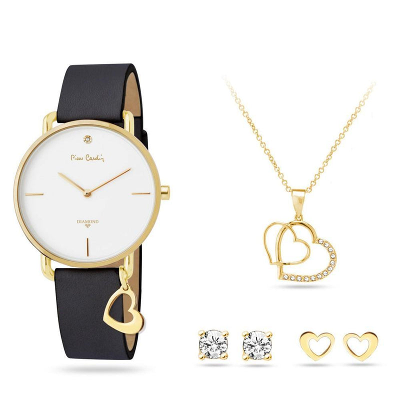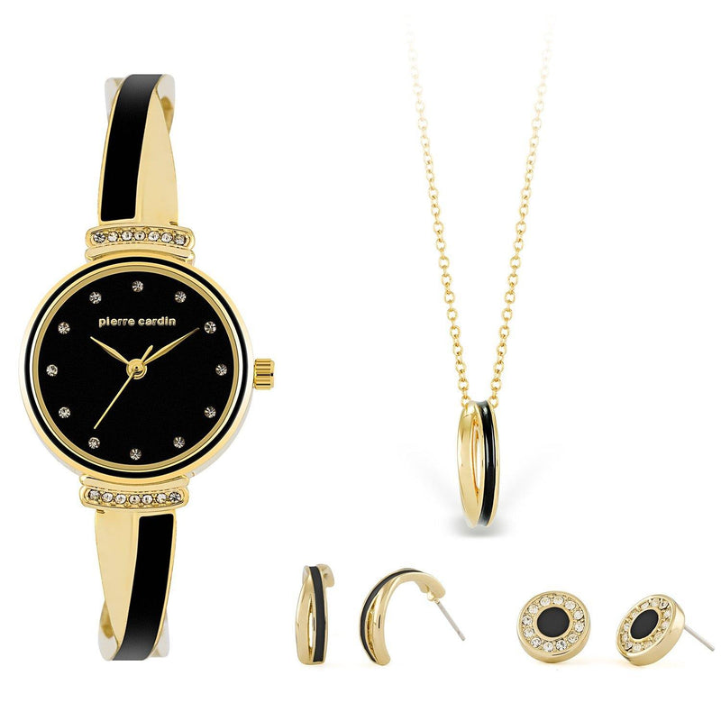 4dílná Dárková Sada Hodinek Pierre Cardin, s náhrdelníkem a 2 páry náušnic