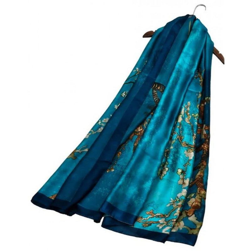 100% Hedvábná Šála, 90 cm x 180 cm, Van Gogh Mandlový Květ