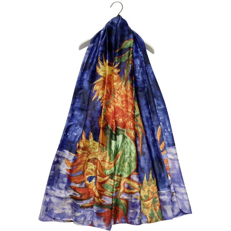 100% Hedvábná Šála, 90 cm x 180 cm, Van Gogh Šest Slunečnic