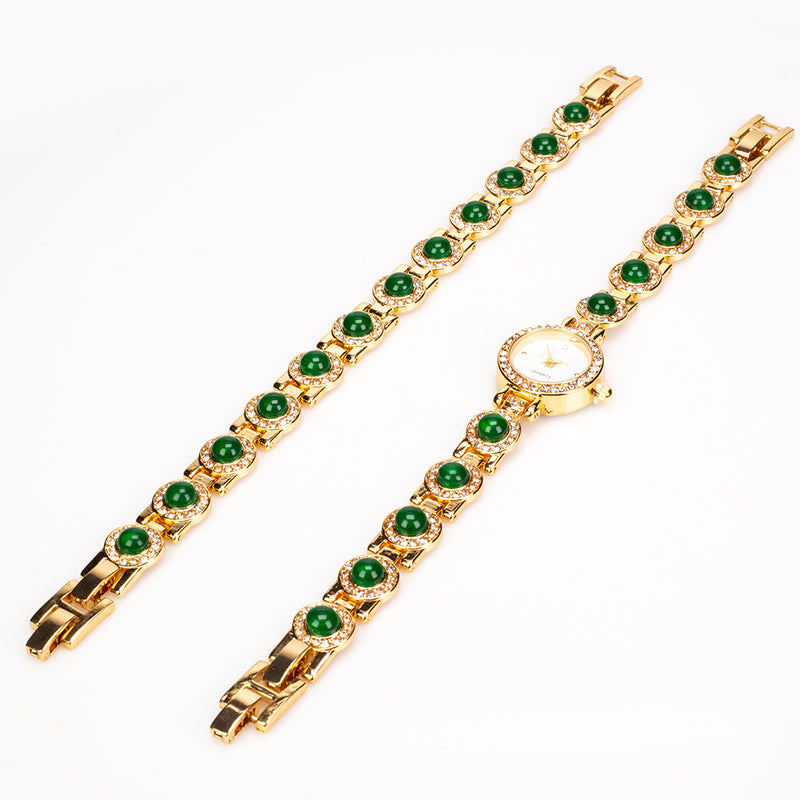 Pozlacená Slitinová Sada se Zeleným Jadeitem z Marsden River a Bílým Emporia® Křišťálem ( Náramek )