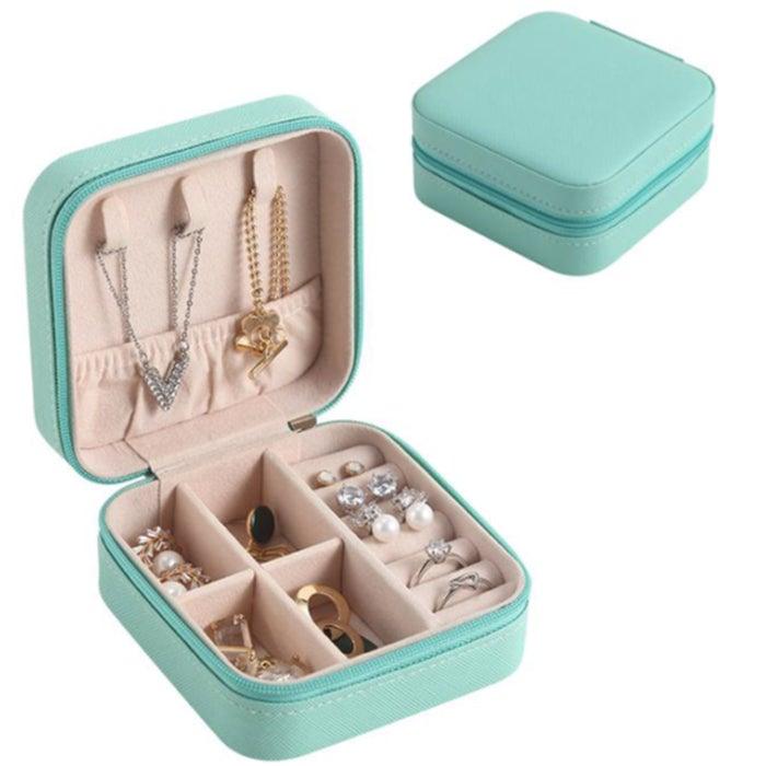 Organizér na Šperky z PU Kůže a Sametu, Tyrkysová barva