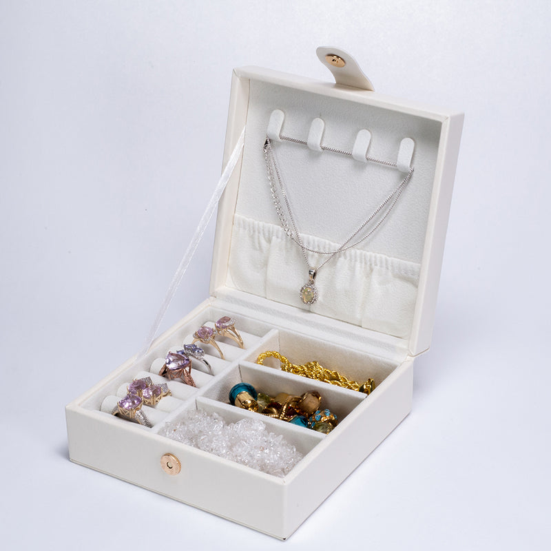 Organizér na Šperky z PU Kůže a Sametu, Bílý