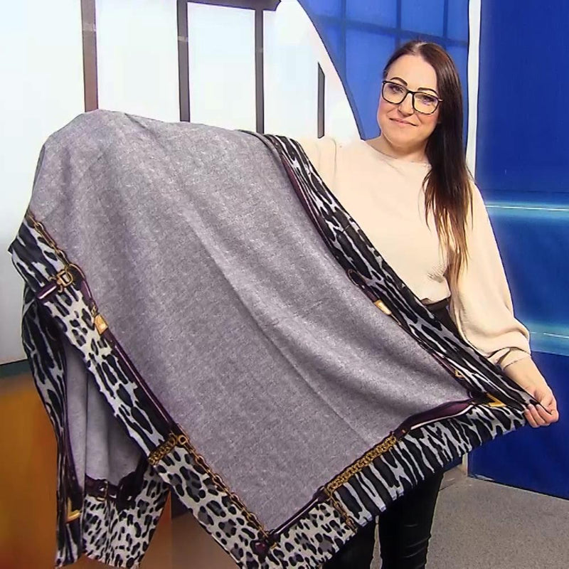 Vzorovaná Vlněná šála-šátek, 70 cm x 190 cm, Šedá