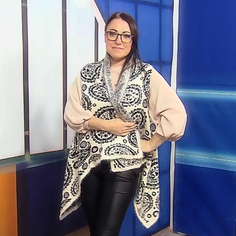 Pletené pončo, 80 cm x 130 cm, Černá a bílá barva