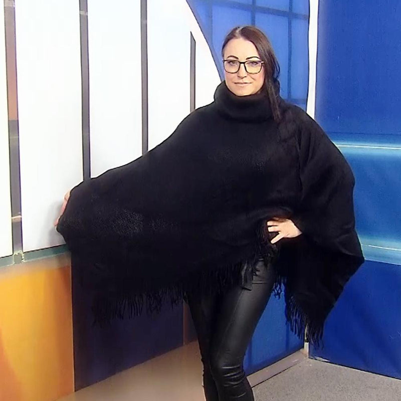 Pletené pončo, 50 cm x 70 cm x 335 cm, černá