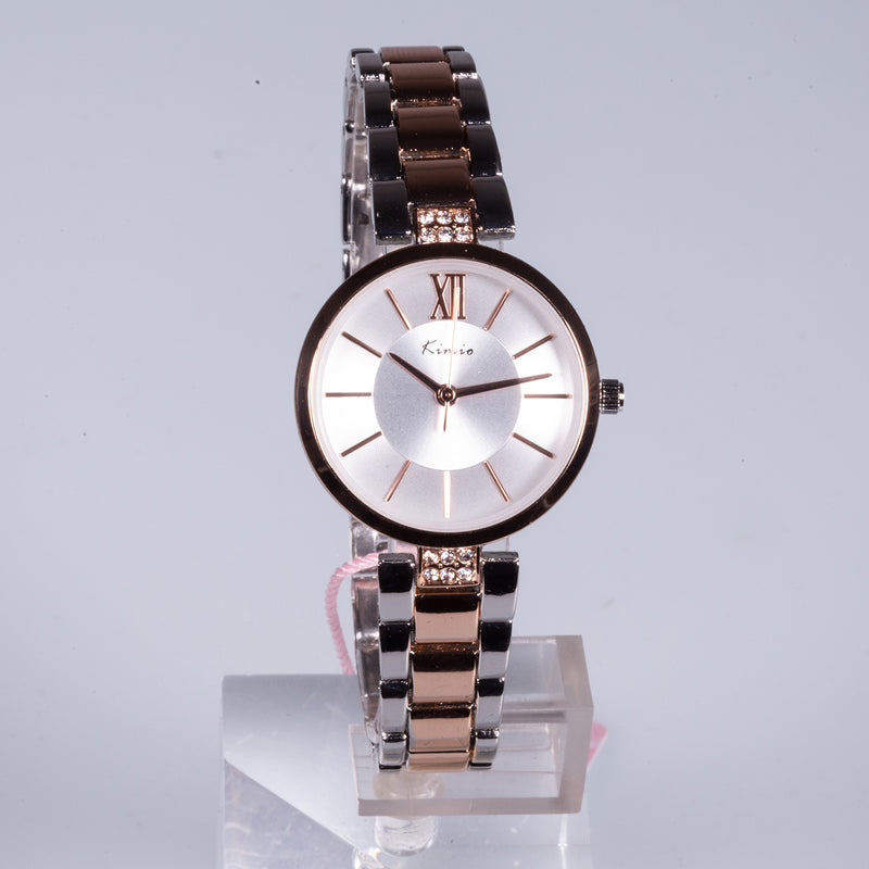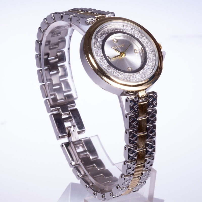 Hodinky z Ušlechtilé Oceli s Bílým Ciferníkem, Kovovým Řemínkem ve Zlaté a Stříbrné barvě a Zirkonem