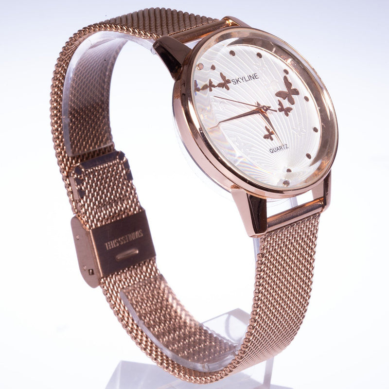Módní Náramkové Hodinky v Barvě Růžového Zlata, Butterfly Edition